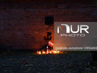 A memorial dedicated to a Polish soldier from the Country's Army (AK), killed by Nazi soldiers in 1944 during the Warsaw Uprising, is seen in the Powazki cemetery in Warsaw, Poland, on November 1, 2025.
