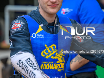 Monarchs' Guest Rider Vinnie Foord participates in the WSRA National Development League match between Belle Vue Aces and Edinburgh Academy at the National Speedway Stadium in Manchester, on October 12, 2025.