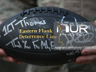DEBA, POLAND - NOVEMBER 18: Riki Ellison, a New Zealand-American former NFL linebacker who played ten seasons and founder and chairman of the Missile Defense Advocacy Alliance, holds a ball after a live-fire demonstration at the Deba training grounds in Subcarpathian Voivodeship, Poland, on November 18, 2025. The exercise is part of Eastern Sentry enhanced vigilance efforts launched in response to recent drone incursions along NATO's eastern flank.
