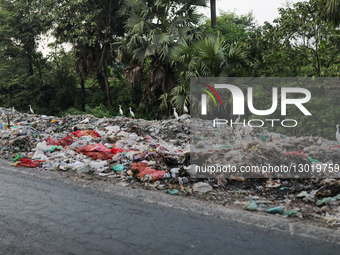 Storks perch on a garbage heap beside the highway in Gazipur, Bangladesh, on November 23, 2025.