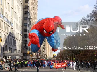 The Amazing Spider-Man swings back onto the streets during The 99th Macy's Thanksgiving Day Parade in New York, United States, on November 27, 2025. Known for his spider-like abilities such as superhuman strength, web slinging, and wall-crawling, this friendly neighborhood superhero is a staple of pop culture since his debut.