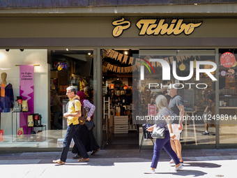The exterior of a Tchibo store offers coffee, clothing, and household products in a busy pedestrian shopping street in Stuttgart, Baden-Wuerttemberg, Germany, on June 21, 2025. Tchibo is a major German retailer that combines coffee sales with weekly rotating non-food assortments.