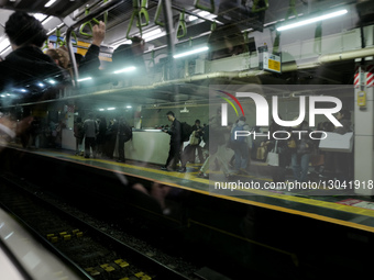 People wait for a train on the platform of a metro station in Tokyo, Japan, on November 29, 2025.