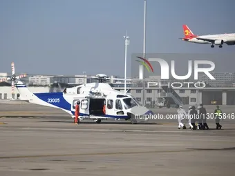 Rescue personnel transfer severely injured passengers from a ''distressed aircraft'' to an AW139 rescue helicopter during the 2025 Aircraft Emergency Rescue Comprehensive Practical Exercise at Xiaoshan International Airport in Hangzhou, Zhejiang Province, China, on December 9, 2025.