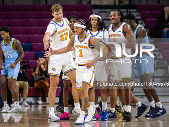 The Hofstra Pride celebrates during an NCAA men's basketball game at The Palestra in Philadelphia, United States, on November 29, 2025.