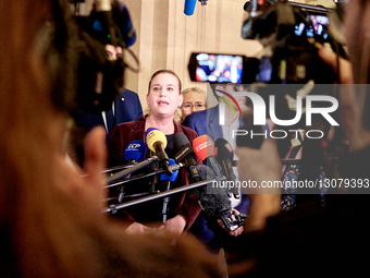 President Of La France Insoumise - Nouveau Front Populaire Parliamentary Group Mathilde Panot Speaks To The Press After The Vote On The Social Security Financing Bill For 2026 , PLFSS , At The National Assembly, France's Lower House Parliament, In Paris On December 9, 2025.