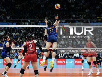Pimpichaya Kokram of Thailand plays against Vietnam during the women's volleyball final match of the 33rd Sea Games at Huamark Indoor Stadium in Bangkok, Thailand, on December 15, 2025.