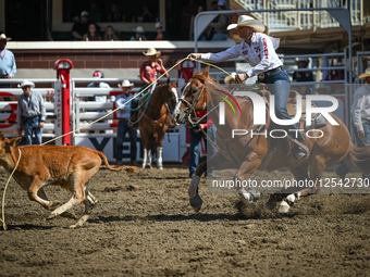 CALGARY, CANADA - JULY 7: Bradi Good from Abilene, Texas, competes on Breakaway Roping, during the 2025 edition of the Calgary Stampede in Calgary, Alberta, Canada, on July 7, 2025. Drawing over a million visitors each July, the 10-day Calgary Stampede combines one of the world's largest rodeos with chuckwagon racing, concerts, a midway, agricultural competitions, and vibrant First Nations exhibitions.